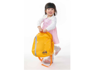5歳から8歳ぐらいのお子さんを想定して、クミカ工業株式会社様、加賀産業株式会社様と協働で製作し、商品化しました。すべてのこどもを災害から守りたいという想いがたくさん込められています。