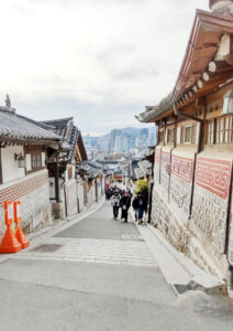 ホテルで朝食をとり、期待していた現地大学生との街歩きです。ペファ女子大学の日本語学科の女子大生5名が来てくれました。5班に分かれて、カフェの多いソンス洞コース、チョンゲ川コース、K文化コース、弘大コースを体験しました。現地大学生が引率してバスの乗り方も覚えました。地下鉄よりずっと便利で、アプリを使えば簡単に乗れました。バスの乗り方はマスターしたかな。