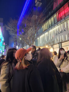 1日目の最後は焼肉「サムギョプサル」でした。本場のサムギョプサルは美味しかった。みんな完食でした。サンチュやおかずが食べ放題だったのもうれしかったです。明洞の夜景を楽しみながら一日を終えました。