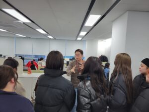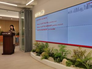 午後はロッテJTBさんの企業訪問をしました。学長も駆けつけてくださり、学生さんも大喜びでした。ロッテJTBで働く日本の方が日本人として韓国で働いている経緯や働く環境についてわかりやすく説明してくださり、実際の事務も見学できました。普通はできない大変貴重な体験ができました。建物の入り口からエレベーター、事務所の各自にセキュリティがあるのも驚きでした。