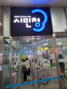 企業訪問の後は、市民庁を尋ねました。市役所の地下にあるところで、ビックデータを使って市役所を運営しているとのことでした。「ITソウル」を体験できました。