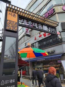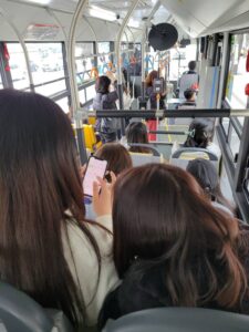 ホテルで朝食をとり、期待していた現地大学生との街歩きです。ペファ女子大学の日本語学科の女子大生5名が来てくれました。5班に分かれて、カフェの多いソンス洞コース、チョンゲ川コース、K文化コース、弘大コースを体験しました。現地大学生が引率してバスの乗り方も覚えました。地下鉄よりずっと便利で、アプリを使えば簡単に乗れました。バスの乗り方はマスターしたかな。