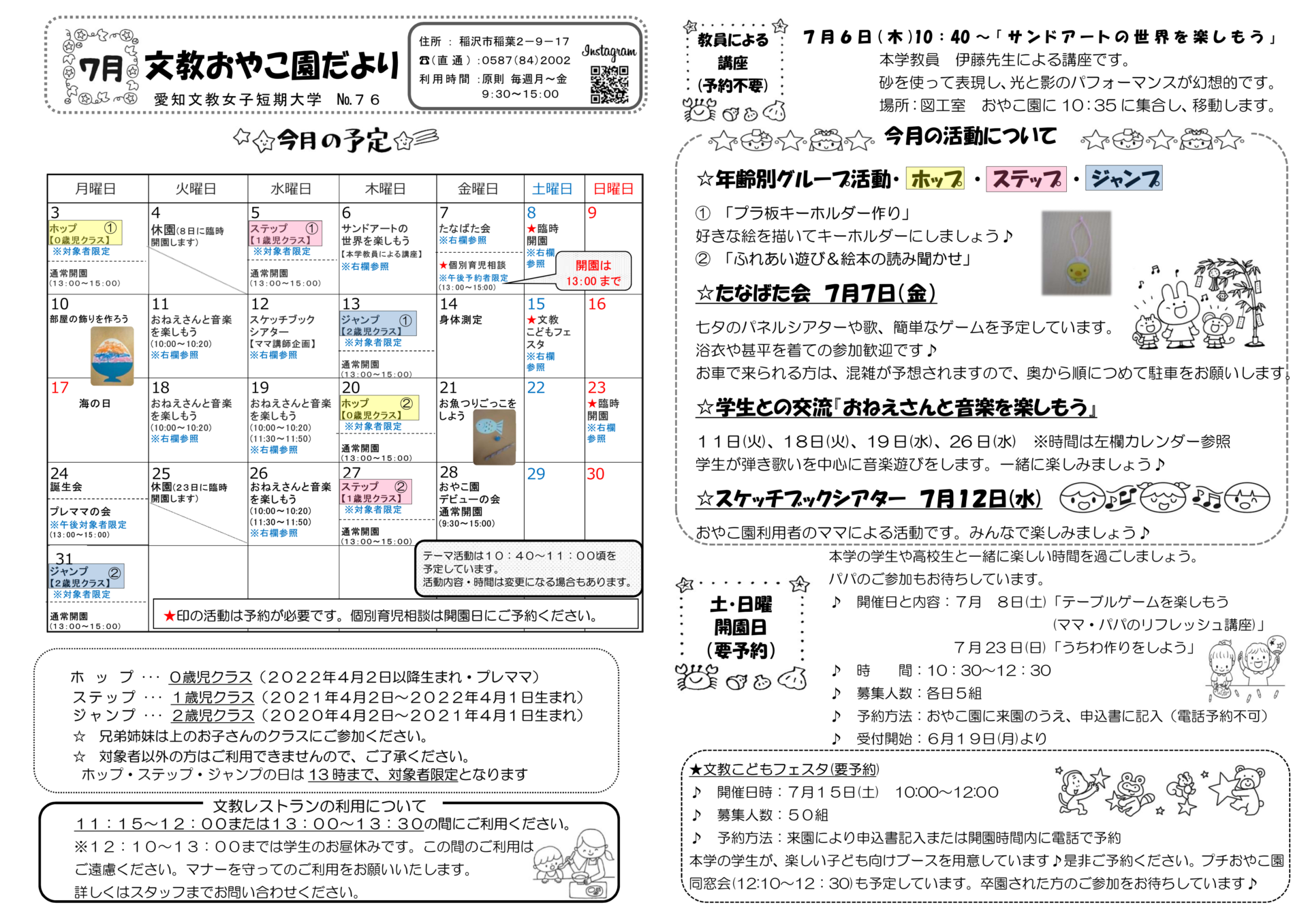 文教おやこ園だより 7月号