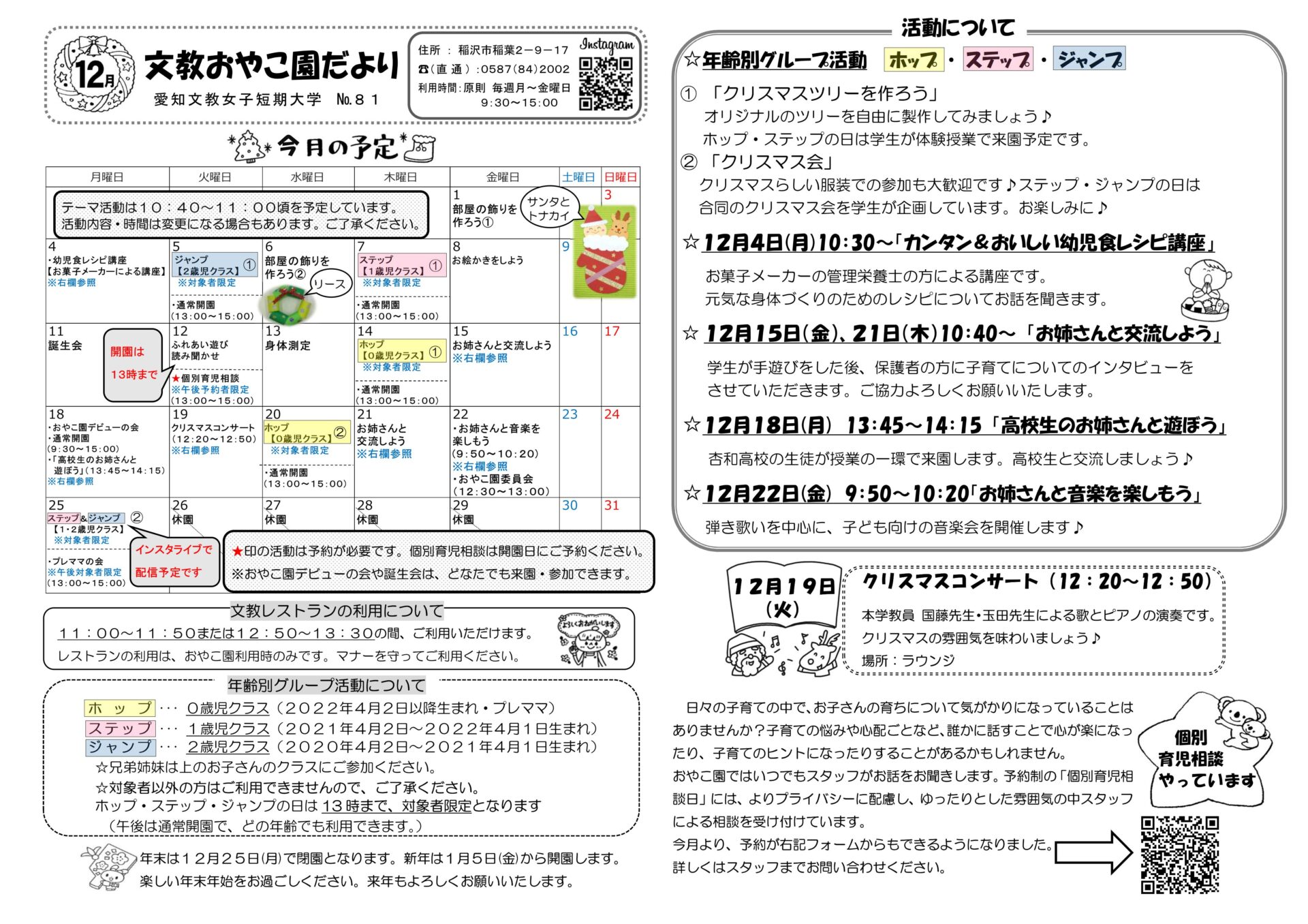 文教おやこ園だより 12月号