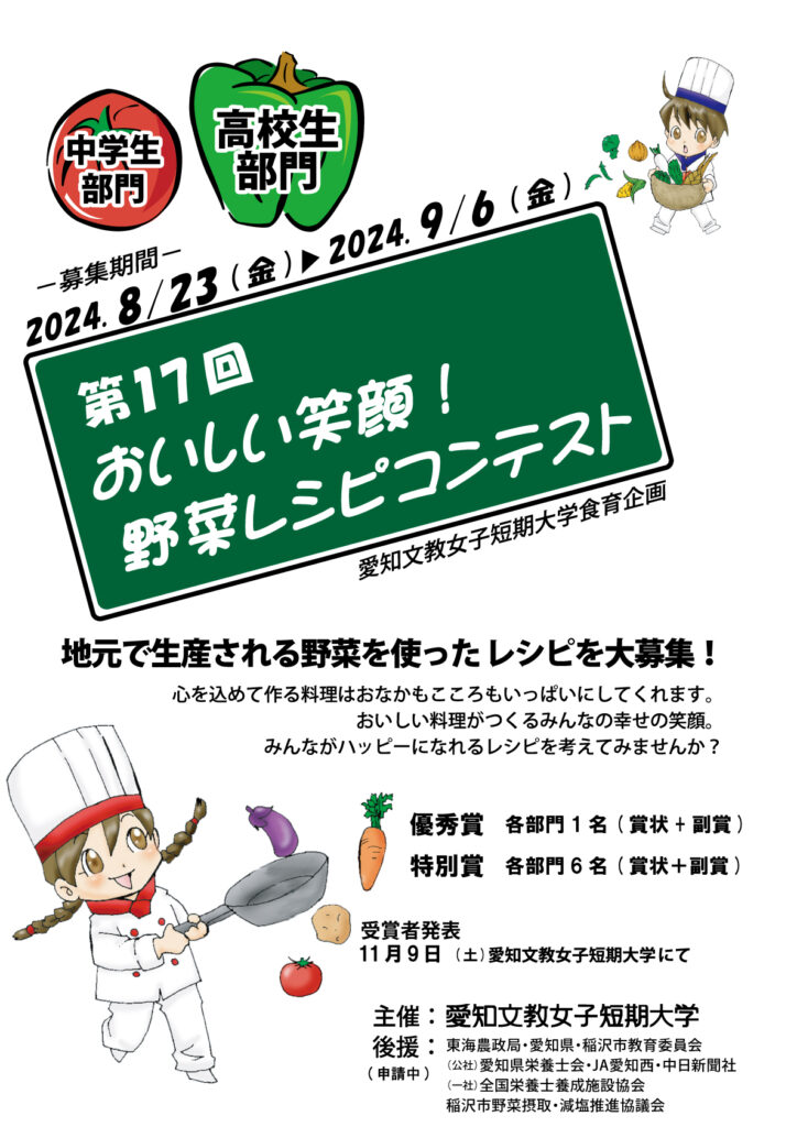 「第17回おいしい笑顔!レシピコンテスト」係(9月6 日消印有効)