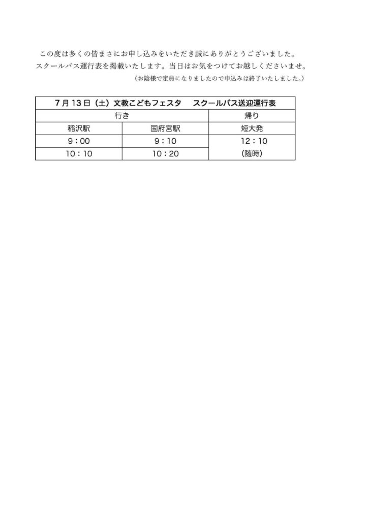 第15回文教こどもフェスタ スクールバス送迎運行表
