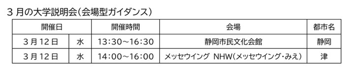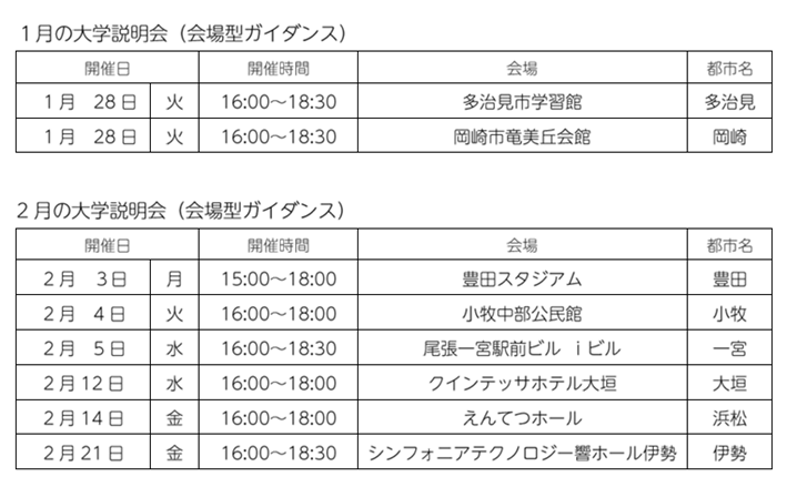 大学説明会(会場型進学ガイダンス)参加会場一覧