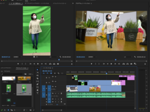 生活文化専攻の新しい学び 2022.10.29 生活文化専攻では動画の編集も楽しく学んで行きます。 オープンキャンパスでは実際にクロマキー合成を体験していただきました。 緑の背景(グリーンバック)で撮影した動画を、PremiereProという アドビのソフトウェアでクロマキー合成することで、 不思議な世界を作り出すことができます。 ぜひ本学の学びの中で体験してください!