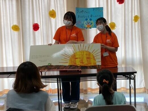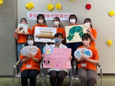 「お姉さんとおはなしを楽しもう!」と題して部屋を飾り付け、 お揃いのオレンジTシャツを着て、いざスタート!