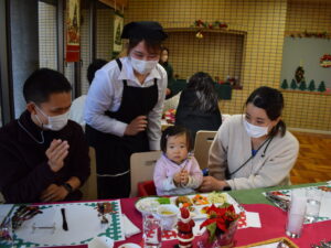 みんないっしょのクリスマスでは、安心して何でも食べられます。