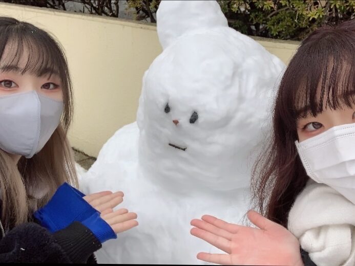 ホワイトクリスマス 2022.12.24 雪が降りました! 短大もすっかり雪景色です。 今日はクリスマスイブですが、補講日のため学生さんも朝から登校です。 あちらこちらでかわいい雪だるまさんたちが登場してくれていました。 ★ Merry Christmas ★