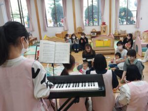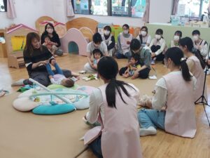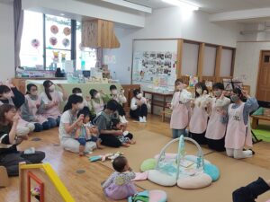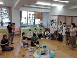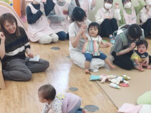 一緒にお歌を歌ったり、手遊びをしたり、絵本を読んだり、ふれあい遊びをしたり。。。