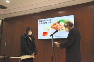 コンテスト受賞レシピは「お店で出せるで賞」「美味しい&バエルで賞」「バエルで賞」の3つ!コロナの感染者が増えていた令和4年12月でしたが、対面で表彰式も出来ました。