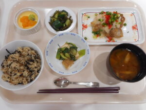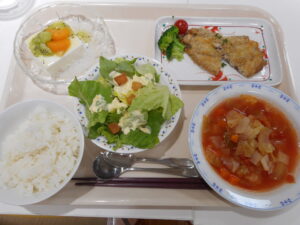 5月26日のメインはA献立が鶏肉のさっぱりおろし煮、B献立が魚のパン粉焼き。