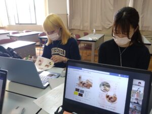 2年生は、昨年商品化したプラントベースのアイスをカフェで提供できるようにメニューを考え企画書を作成中。