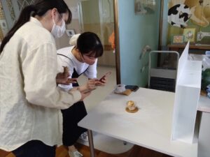 1年生は、大豆たっぷりの焼き菓子「ぱりまる」の新商品開発を製造している授産所と行っています。