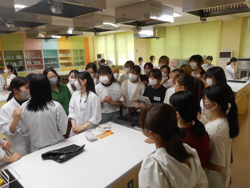 6月26日の食物栄養専攻のキャリアチャレンジは、「調理技術指導」。テーマは「包丁技術」で、2年生が1年生を指導しました。