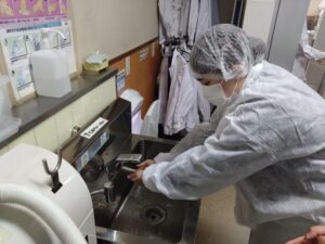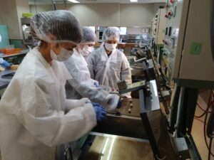 工場に入るときは、白衣を着て帽子をかぶって、手を洗い・・・と衛生管理を私たちもしっかり行いました。