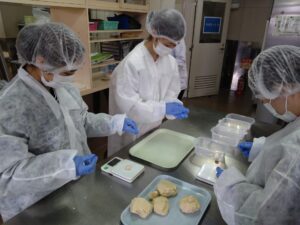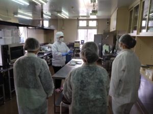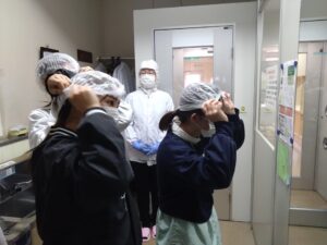 工場に入るときは、白衣を着て帽子をかぶって、手を洗い・・・と衛生管理を私たちもしっかり行いました。
