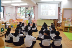 愛知県立一宮商業高校3年生(高校生17名)を対象に、保育関連の模擬授業を実施しました。