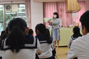愛知県立一宮商業高校3年生(高校生17名)を対象に、保育関連の模擬授業を実施しました。