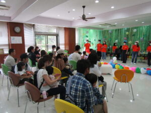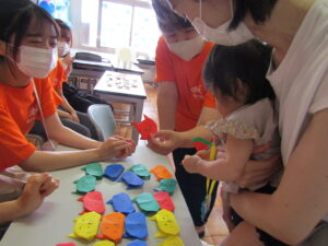 文教こどもフェスタは毎年、幼児教育学科の授業の一環として、学生達が日々の講義で学んだ知識や技術を応用し、乳幼児向けの遊びを企画しています。