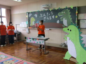 「この準備はクラス全員がこどもフェスタに前向きな気持ちを持ってないとできないし、全員で協力しながら準備しないと完成しないことなのでとても大変だなと感じましたが、周りを見て今は何をすべきかなど考えながら準備したり、普段なかなか喋る機会がない子ともこのこどもフェスタを通して喋ったり関わることが出来たので良かったなと思いました。」