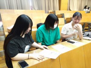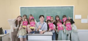今日は前期最後の授業。とっても楽しい授業だったので、最後は、名残惜しそうに先生と写真撮影会をしていました。