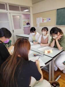 幼児教育学科の1年生が、初めての幼稚園実習にむけて、実習交流会を行いました。