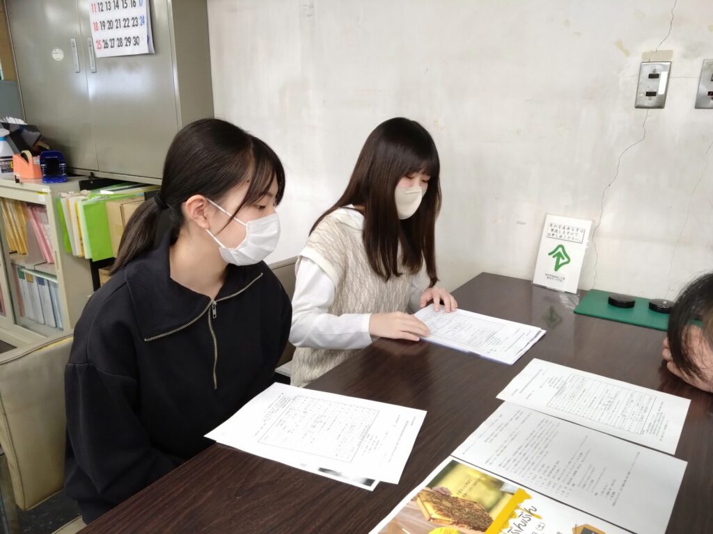 夏休みに大切な人と環境について学ぶ講座を行おうと、講座の内容を考え、講師の先生から自分たちもミツバチと環境に関して学び、チラシを作成したり、HPで発信したり、当日使用する配付資料を作成したり・・と、どうしたら、友達にも教えたくなるような内容、自由研究にも発展できる内容になるかを考え、学生主体で準備を進めてきました。