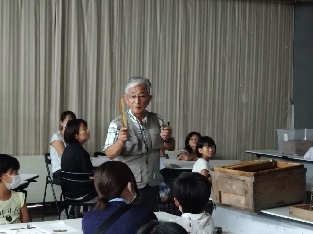講師をお願いする、稲沢市平和町で養蜂活動を行っている養蜂家の藤谷昌代先生、稲沢市祖父江町で人とホタルが共生できる自然環境の創造に向けた活動をしている山内晴雄先生から、環境やハチについて学び、どんな講座内容にするかを考えていきました。