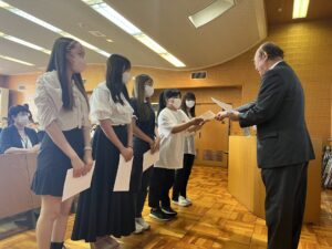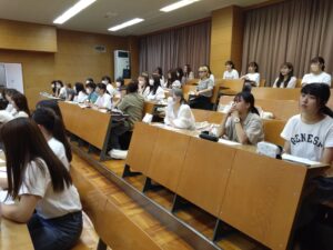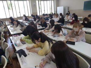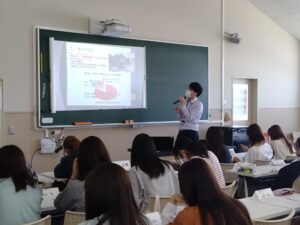 現代教養基礎の授業では、初年次教育として、レポートの書き方やグループワークの方法はもちろん学長先生から建学の精神も学びます。稲沢市役所の職員から、防災や地球温暖化について、稲沢市の取組を交えて、SDGsへの取組も学んだりしました。