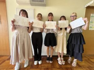 毎回違う人とグループワークをしたり、発表の時間があるので、学科を超えて、色々な人と関わることや、協力することができるようになる現代教養基礎。最初はできないことが多くても、昨日より今日。今日より明日。と自分を磨くことができる人がたくさん育っています。