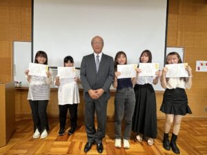 愛知文教女子短期大学では、1年次に全学の学生を対象に学科・専攻をミックスした少人数グループで学ぶ現代教養基礎という授業があります。授業の集大成となる発表コンテストが行われました。