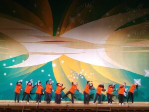 岡田先生は、会場の皆さんと一緒に体を動かし、元気あふれるステージで、学生たちもお客様もみんな笑顔になりました。
