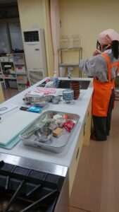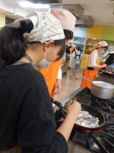 短い講座時間で安全に調理が行えるよう、準備をします。