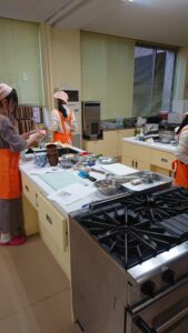 献立作成、試作、子どもたちへの調理指導を通じて、学童期の発育、発達を観察し、学年に合わせた食育活動方法を実践的に学んでいます。