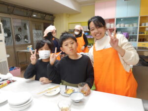 調理方法なども学びますが、料理の上達だけが目的ではなく、料理を通して様々な知識も力も伸ばす「めざせ!ちびっこシェフ」子どもたちも学生たちもみんなが成長でき、笑顔になれる講座です。