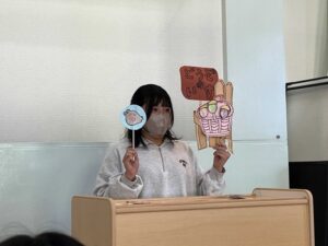 幼児教育実習事前事後指導の授業で、ペープサートを制作し実践発表を行いました。