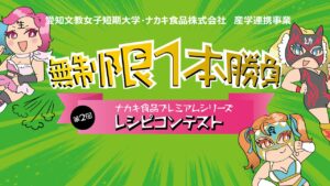 稲沢市にある100年以上の歴史があるこんにゃく製品製造一筋のナカキ食品との連携プロジェクト、昨年に続き第2回目となるナカキ食品プレミアムシリーズレシピコンテスト。ナカキ食品の製品を使い、学内レシピコンテストが行われ、12月13日に表彰式が行われました。第2回目となる今回は、食物栄養専攻の学生だけではなく、幼児教育の学生もエントリーし、沢山のアイデアが提出されました。