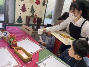 1年次から食物アレルギーの基礎を学び、2年次に「みんないっしょのクリスマス」で実践。