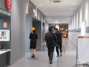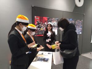 豊田合成株式会社、TG SPORTS株式会社、名古屋観光ホテル、愛知文教女子短期大学の連携事業として行われた「冬の夜のディナー&ピアノコンサート」。来場者の受付や案内など有志で集まったスタッフ学生が行いました。初めてボランティアする学生は、どう声掛けしていいのか最初は戸惑っていましたが、時間が経つにつれ、スムーズに案内できるようになり、笑顔でのおもてなしをしていました。