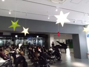 クラシックから、邦楽と、来場者からのリクエスト曲も披露され、幅広いジャンルのピアノの演奏。キラキラしている玉田先生のピアノの音色に、クリスマスムードも高まります。