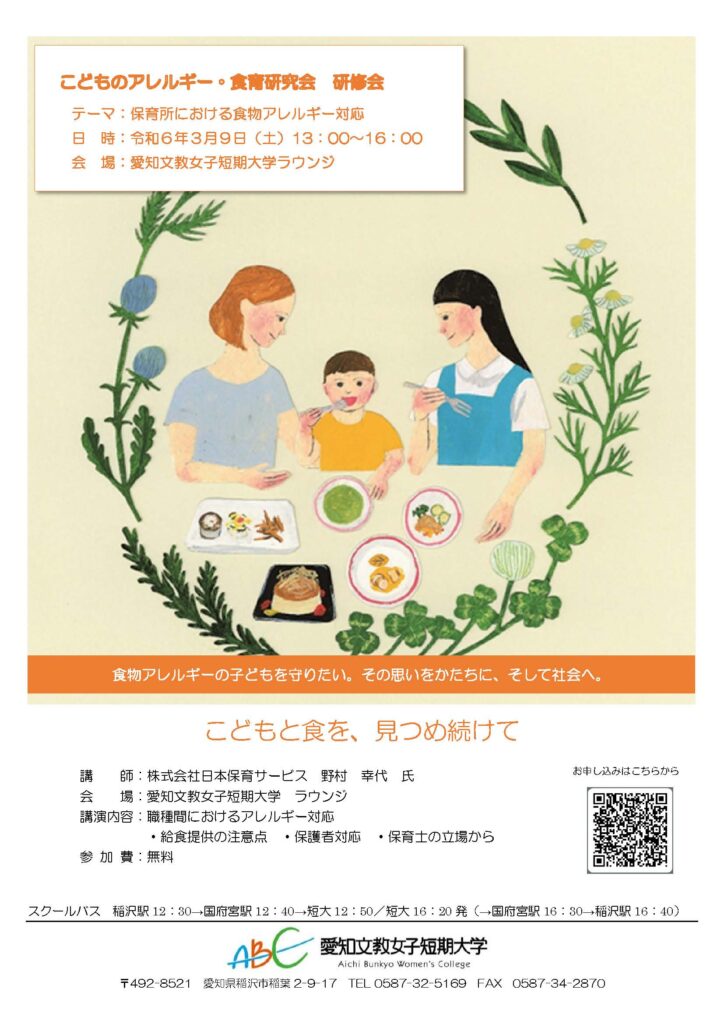 愛知文教女子短期大学にて『こどものアレルギー・食育研究会研修会』を開催します。