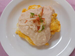 桜をモチーフに桜エビ、桜鯛などさまざまな食材で桜を表現しているのがポイント。アイデアを出し、何度も試作を重ね、目にも口にも美味しい料理になっています。