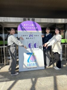 私も江南市については今まで知らなかったのですが、今回のデザイン制作をきっかけにとても自然豊かで「こうなん藤まつり」を始め、花火大会や筆まつりなどいろいろな行事が豊富にあり大変魅力的な街ということを知ることができ、良かったと思います。