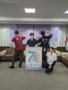 江南市制70周年を記念した、オリジナルウエアが完成し、江南市長にデザイン制作の報告に行ってきました。