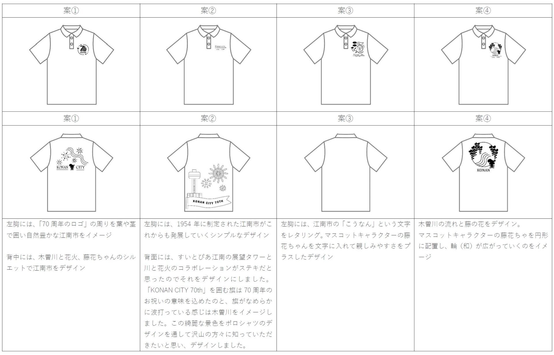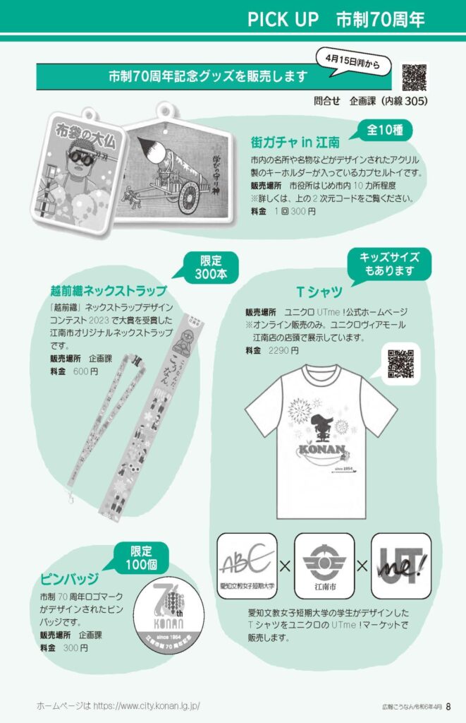 学生たちがデザインしたポロシャツやTシャツで、江南市制70周年記念イベントを盛り上げていきましょう!