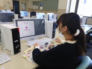 昨年、12月ごろから、生活文化専攻のCG演習の授業で、デザイナーも使っている、Photoshopやillustratorのソフトを使ってデザイン制作に取り組んできました。
