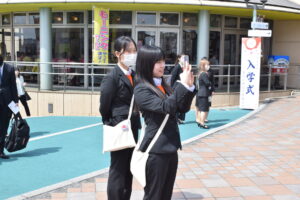 新入生を迎えているように桜が満開に近づき、とても良い天気の下、新入生が新しい一歩を踏み出しました。